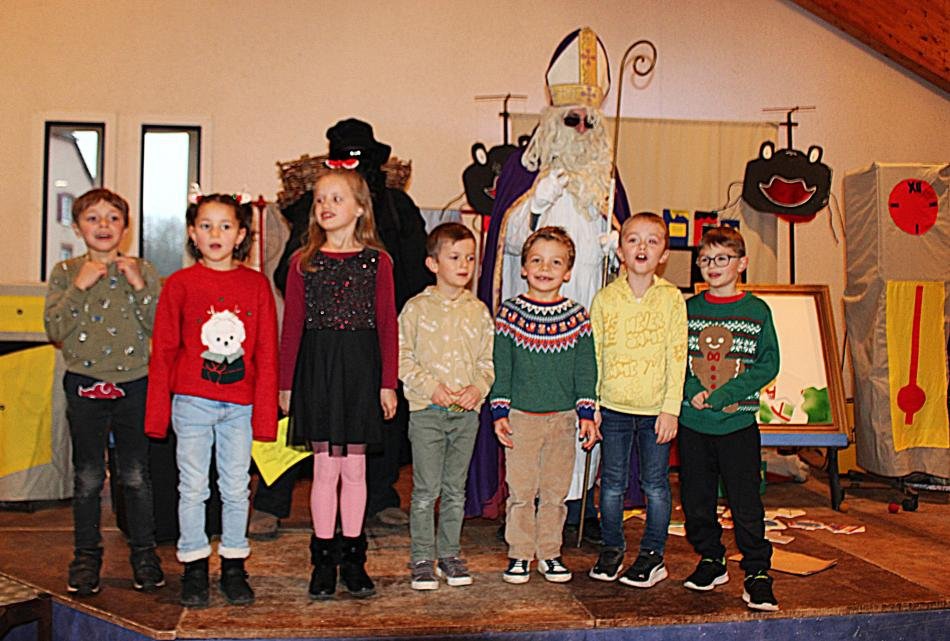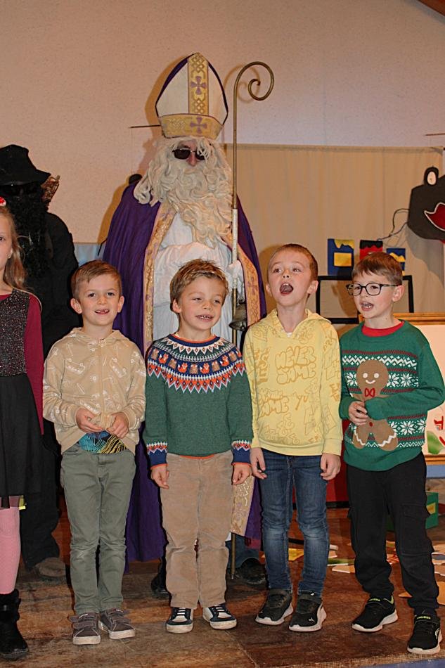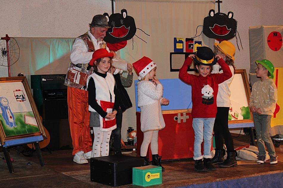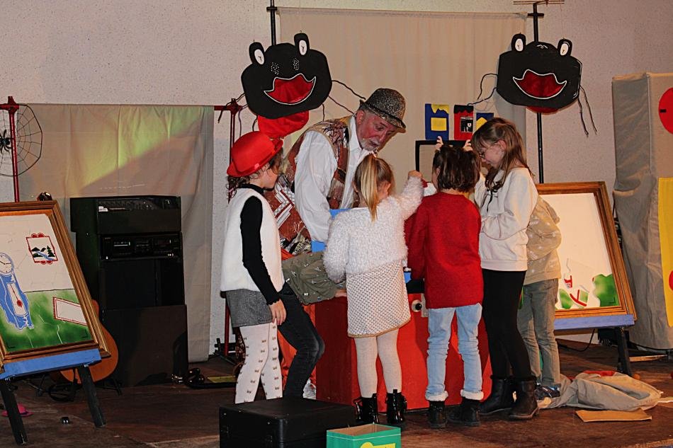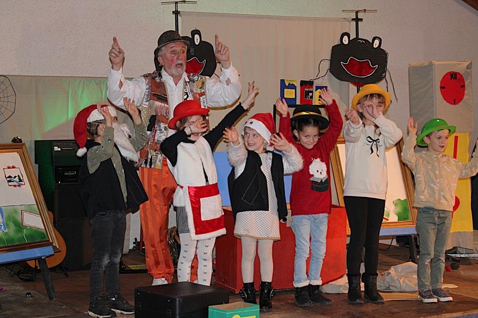 Ce dimanche, vous n'avez pas hésité à affronter le mauvais temps pour venir accueillir Saint-Nicolas et assister au spectacle que nous vous avions réservé. Cette année, vous êtes venus nombreux et tous les enfants étaient heureux de monter sur l'estrade pour participer à la fête avec "Mélasse" qui animait ce bel aprés-midi.